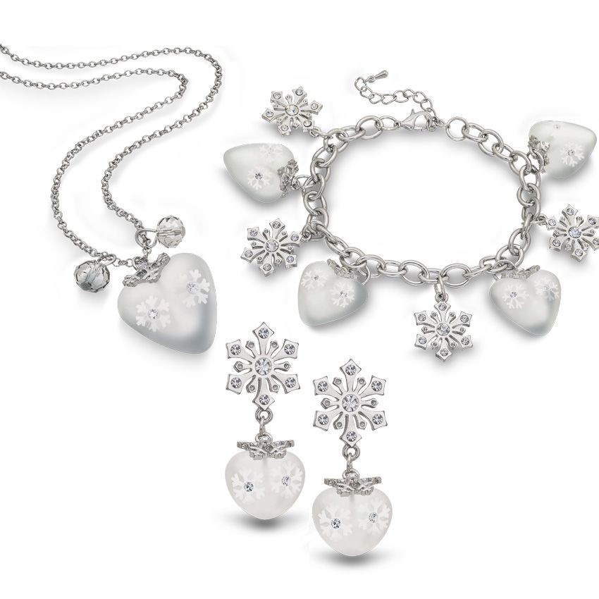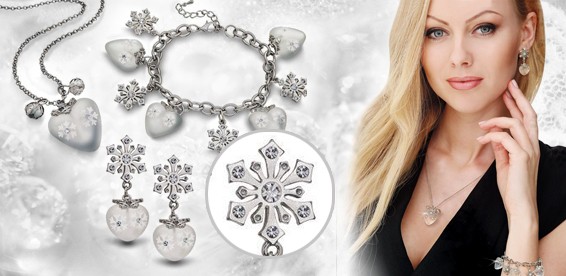 А вы уже решили, в чем будете встречать Новый год? Любое платье будет выглядеть еще роскошнее, если его правильно обыграть с помощью аксессуаров. Кулон на цепочке, браслет и серьги идеально справятся с задачей благодаря поистине новогоднему дизайну. Украшения выполнены в виде прозрачных сердечек и очаровательных снежинок и декорированы искрящимися стразами. Можете быть уверены, вы будете блистать на праздничной вечеринке, а ваша красота засияет новыми гранями.