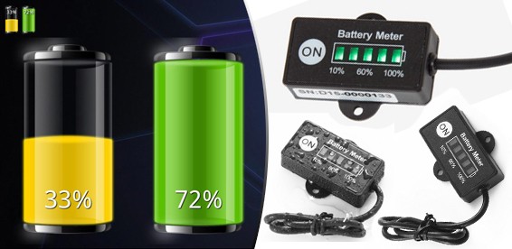 Индикатор уровня заряда аккумуляторной баттареи для авто, мотоцикла, тележки для гольфа и прочее. Заряд батареи 12/24 Вольт. Индикатор легко крепится внутри салона авто.