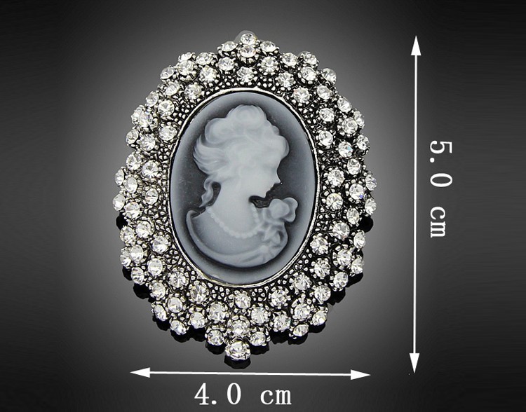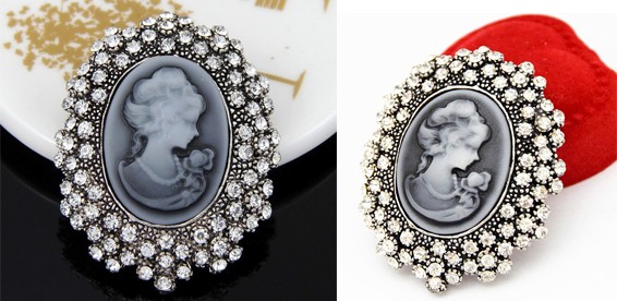 Посеребрённая брошь с горным хрусталём и камеей. Почти королевское украшение.