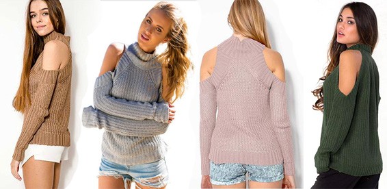 Одежда с открытыми плечами очень актуальна летом, но Вы будете выглядеть вдвое более стильной, если это ещё и свитер с популярным высоким воротником, который могут примерить девушки любого возраста. В сочетании с удобными джинсами можно создать романтический и свободный женский образ.