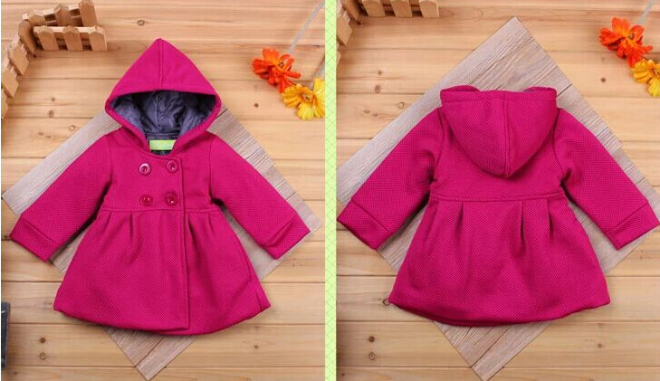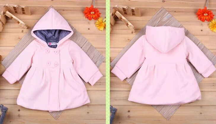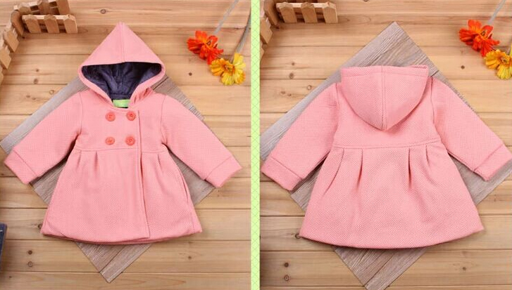 Симпатичное пальто для девочки на сезон весна - осень. Отрезное по линии груди, с застёжкой спереди и капюшоном.