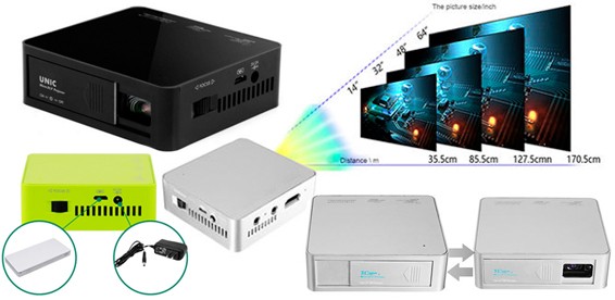 Компактный и мощный мини проектор - при маленьких габаритах в проекторе используется продвинутые технологии DLP. Проектор создаёт резкое и качественное изображение 854 х 480 точек. Встроенный аккумулятор ёмкостью 1500 мАч позволяет смотреть видео до полутора часов.