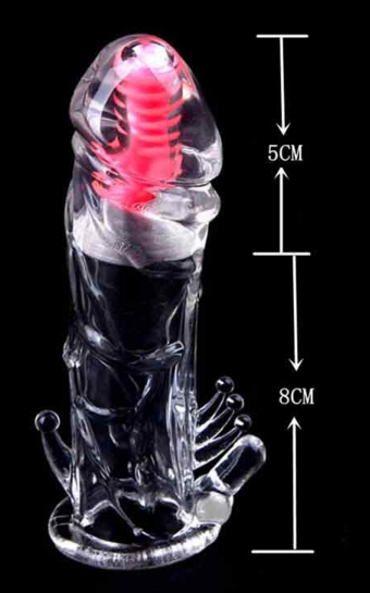 Насадка на пенис с функцией увеличения пениса. Обладает вибрирующей головкой, дополнительным анальным стимулятором и клиторальным стимулятором.