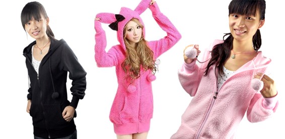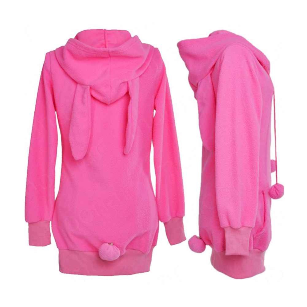 Капюшон с симпатичными кроличьими ушками. Пушистые шарики на завязках и хвостик.