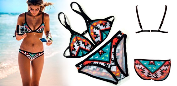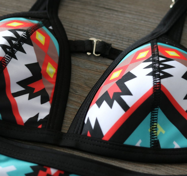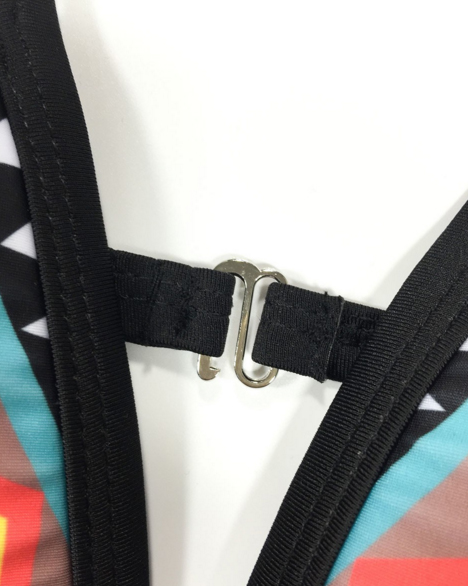 Стильный купальник с геометрическим орнаментом, напоминающем индейские мотивы. Купальник выполнен из качественных материалов и имеет удобную застёжку. Он хорошо сохраняет форму и цвет после нескольких стирок.