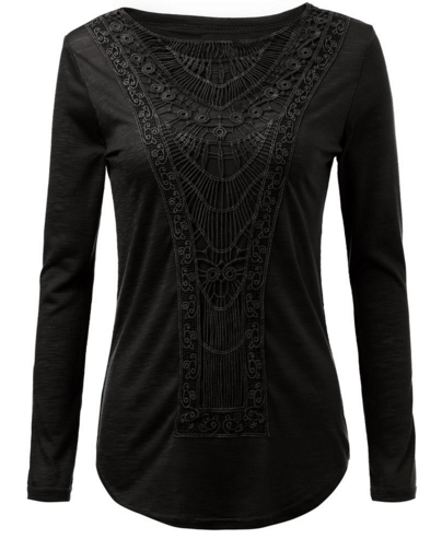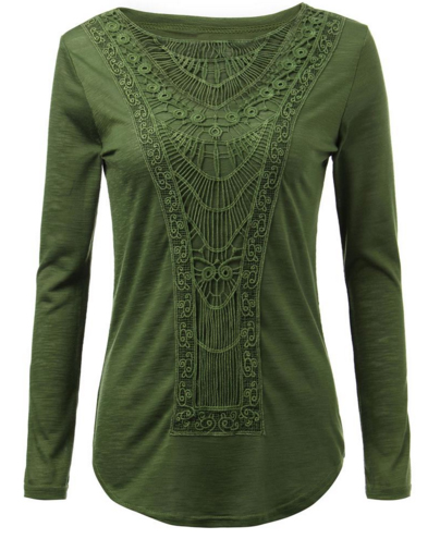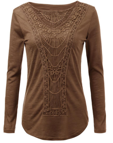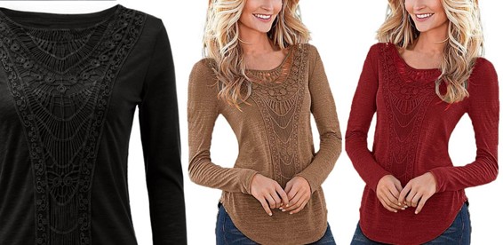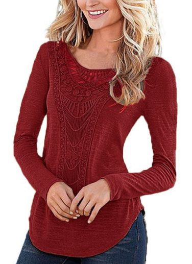 Лаконичная трикотажная блузка с кружевной вставкой спереди - прекрасно будет смотреться с брюками, юбками, джинсами.