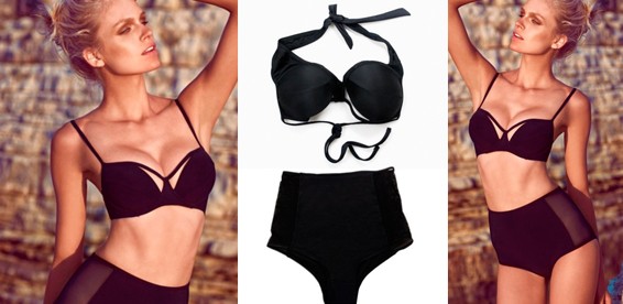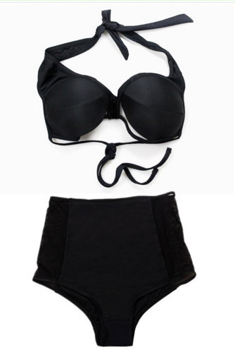 Стильный ретро купальник с трусиками с завышенной линией талии и лифом с завязками на спине и на шее.