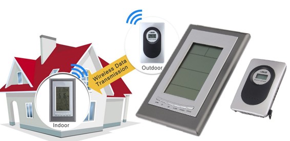 С помощью беспроводной технологии может дистанционнно передавать наружную температуру на домашний приемник с частотой сигнала 433 мГц.