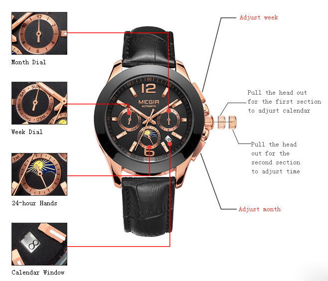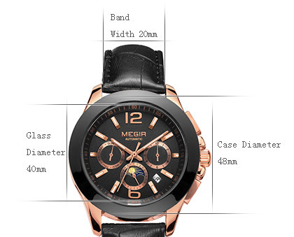 Особенности: хронограф, водонепроницаемые, полный календарь, светящийся форма.