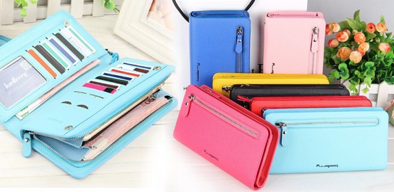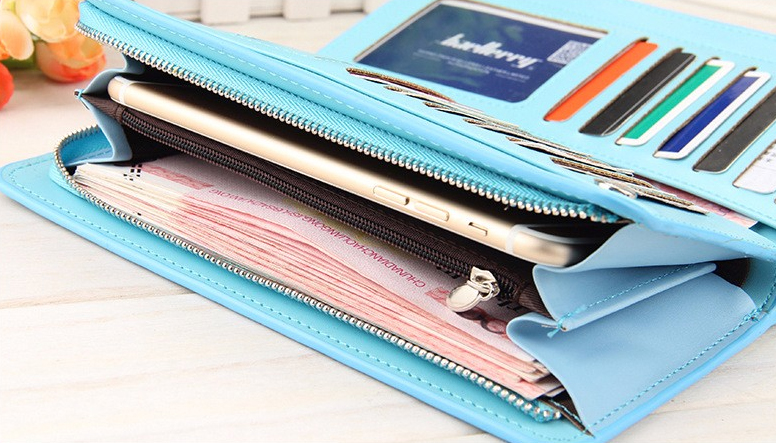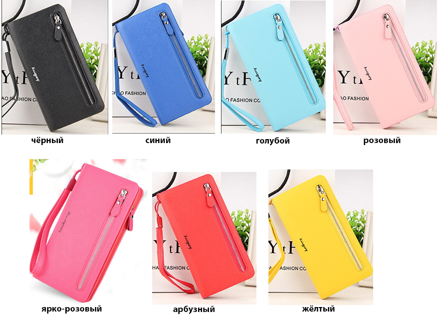 Стильный кошелёк - клатч с отделениями для купюр, мелочи, карт и визиток. Кошелёк удобно носить в руке за счёт съёмного ремешка.