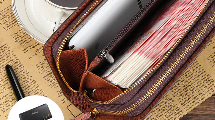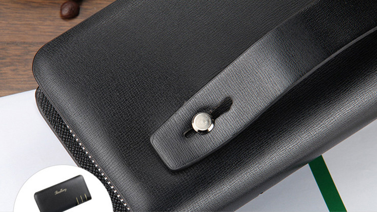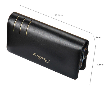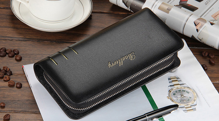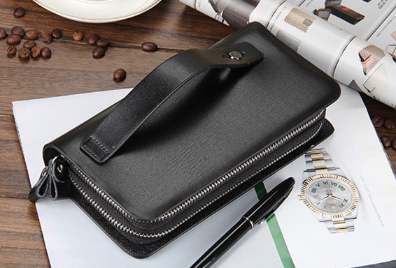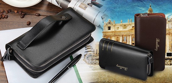 Качественный мужской кошелёк с отделениями для купюр, мелочи и необходимых вещей. Кошелёк закрывается на молнию и имеет на задней стороне удобную ручку.