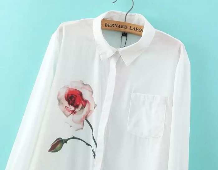 Стильная блузка с асимметричным принтом "Роза". Оригинальный дизайн и удобный крой - идеальный выбор на каждый день.