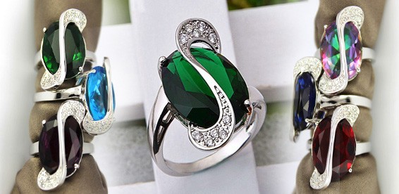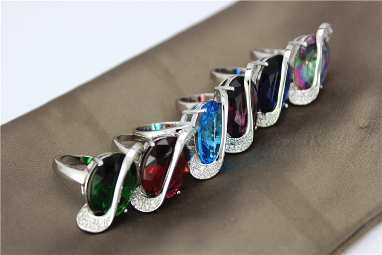 Шикарное кольцо из стерлингового серебра (покрытие - платина). С большим ярким камнем и мелкими кристаллами.