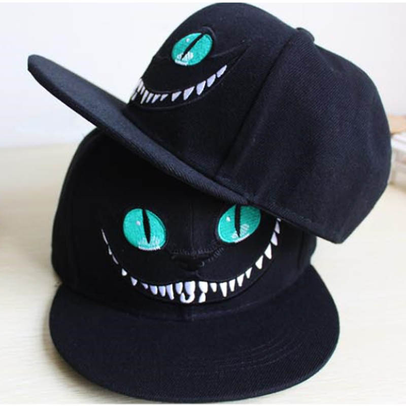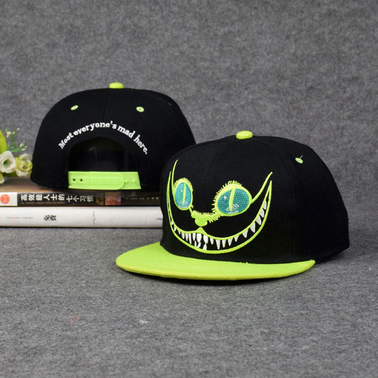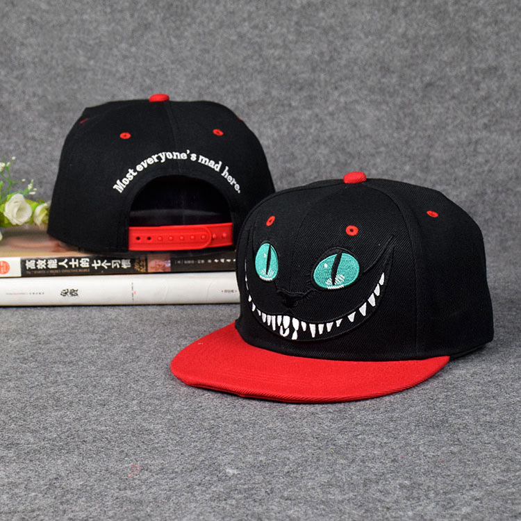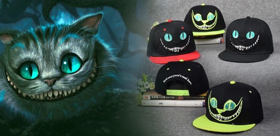 Стильная бейсболка с вышивкой - "улыбка Чеширского кота" и фразами из популярного фильма и книги "Alice in Wonderland".