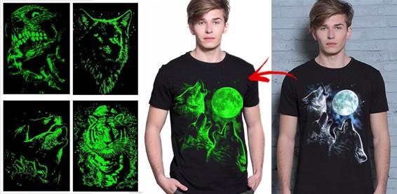 Футболка со светящимся рисунком в темноте - прекрасный подарок на любой праздник. Она выполнена из трикотажа и имеет стильный рисунок.