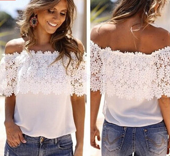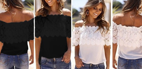 Ажурный топ с кружевом и кокетливыми открытыми плечами - прекрасный вариант для лета. Он достаточно свободный и выполнен из лёгкой ткани.