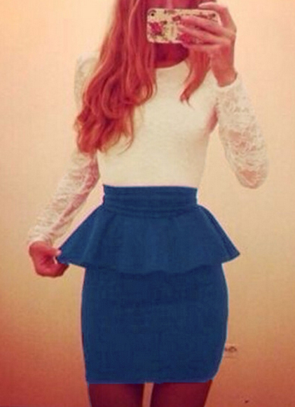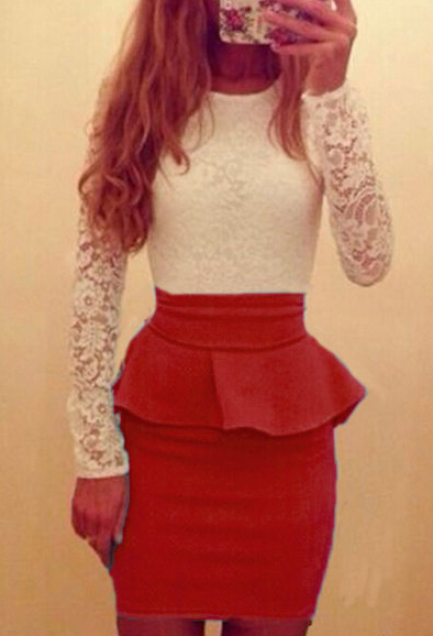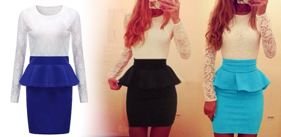 Стильние платье с кружевным верхом и баской. Платье подойдёт на каждый день или для торжественного мероприятия. Оно выгодно подчеркнёт стройную фигуру и тонкую талию.