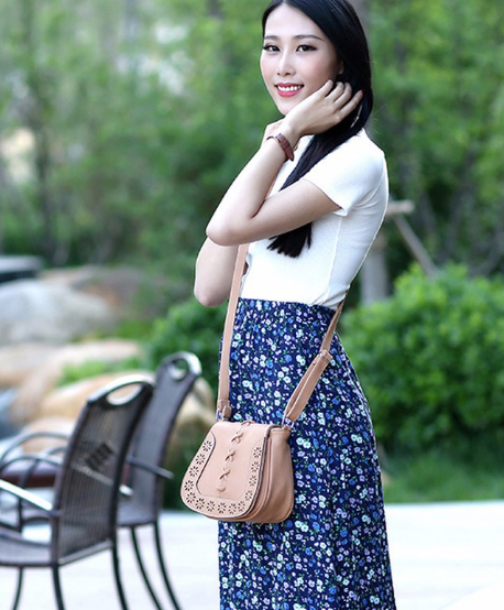 Стильная сумка с перфорацией и имитацией шнуровки. Сумка застёгивается на молнию и магнит. Не смотря на её компактный размер, она вмещает всё самое необходимое.