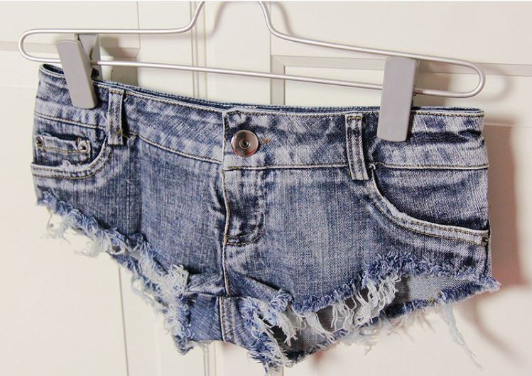 Шорты застёгиваются на пуговицу. Сзади имеется два кармана. Подол с рваными краями.