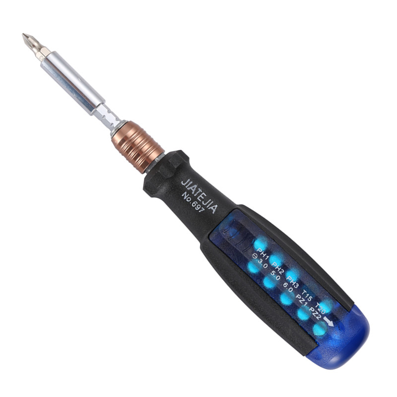 Удобная отвёртка-трансформер 10 в 1 с прорезиненной ручкой.