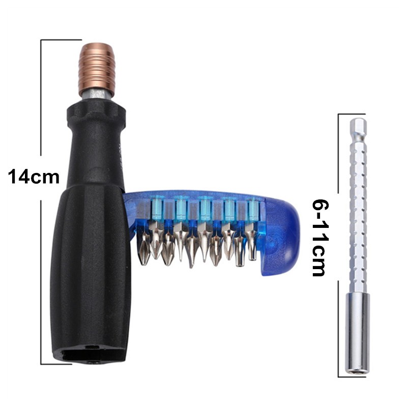 Отвёртка-трансформер 10 в 1 применяется при демонтажных и монтажных работах. Хромированный стержень произведен из прочной инструментальной стали. Имеется прорезиненная удобная рукоятка.