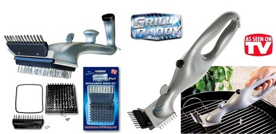 В запущенных случаях для чистки гриля рекомендуется использовать инновационные аксессуары. Grill Daddy отличается от стандартных прототипов наличием водного резервуара внутри ручки.. С помощью щеточки из нержавеющей стали остатки легко удаляются без применения агрессивных химических веществ и жесткого механического воздействия.