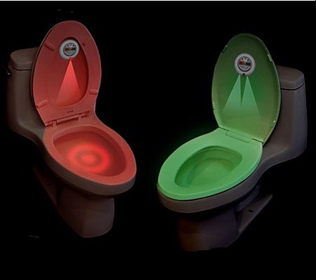 Маленький ночник с датчиком движения "ночной снайпер" надежно крепится на крышку унитаза и срабатывает только при вашем приближении.