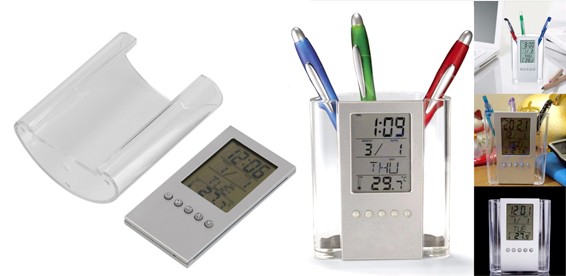 Порядок на столе – порядок в голове: так почему бы не прибраться на рабочем месте? Стильный настольный органайзер не только вместит в себя Ваши канцелярские принадлежности, но и послужит Вам календарём, таймером, термометром, чтобы всё важное всегда было рядом!