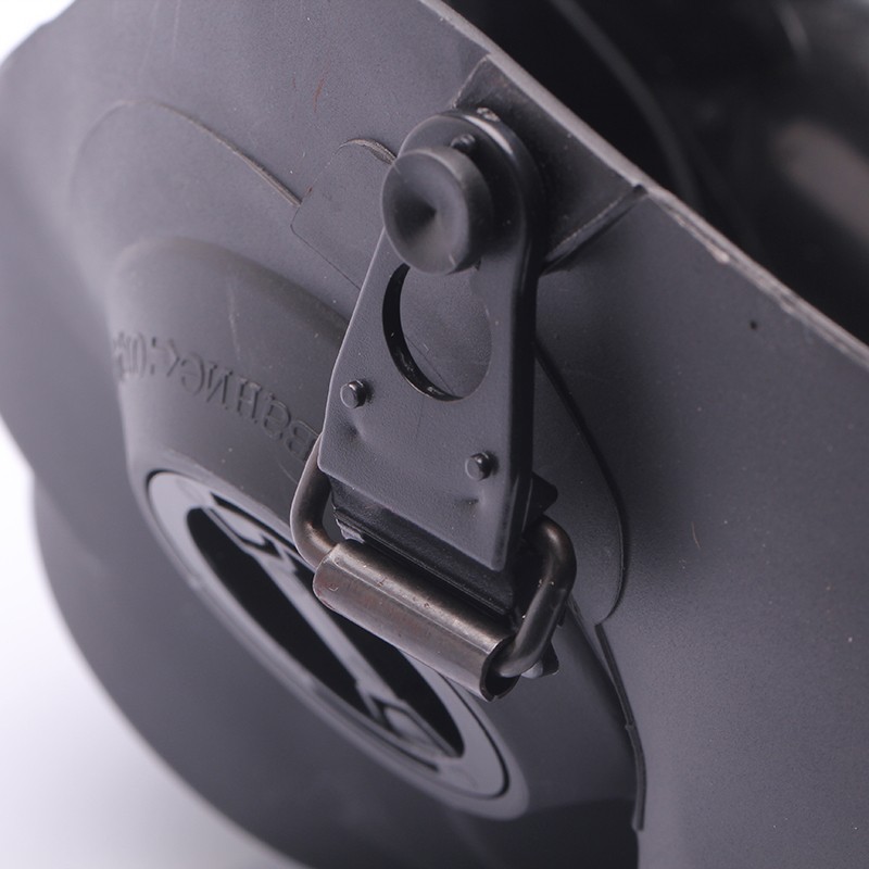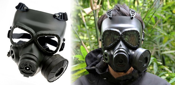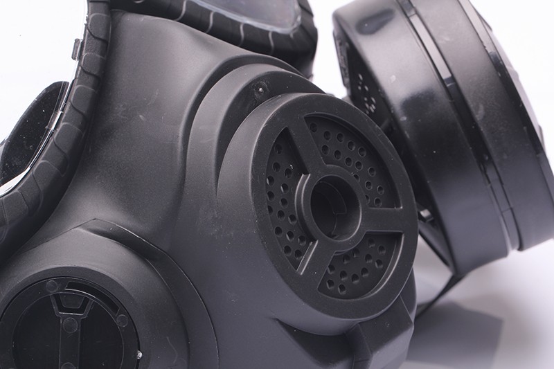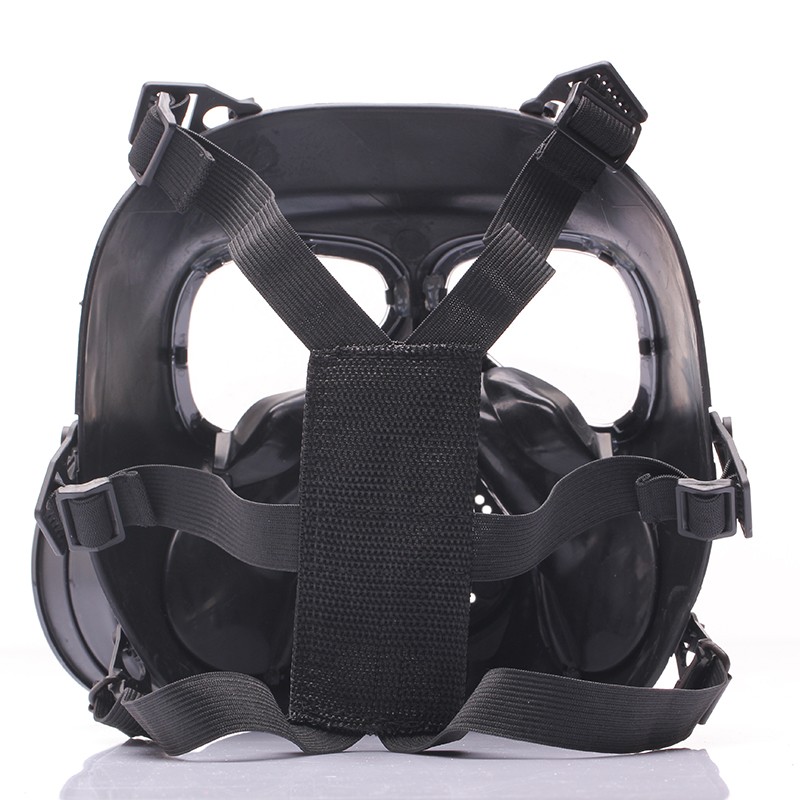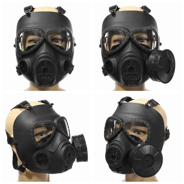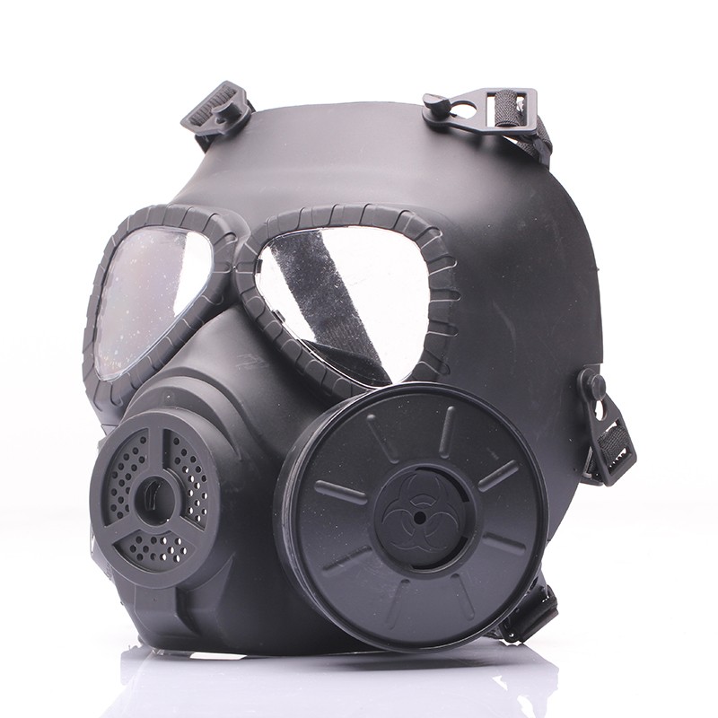 Защитная маска, выполненная в виде противогаза. Изготовлена из прочного пластика черного цвета. Плотно и удобно фиксируется на голове. Внутри есть смягчающие вставки для комфортного ношения даже продолжительное время. Оснащена вентилятором для облегчения дыхания и улучшения вентиляции воздуха в маске. Вентилятор питается от 2 батареек АА (в комплект не входят).