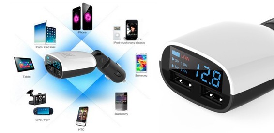 Автомобильная зарядка с двумя usb портами. Можно одновременно заряжать как телефон так и планшет.
