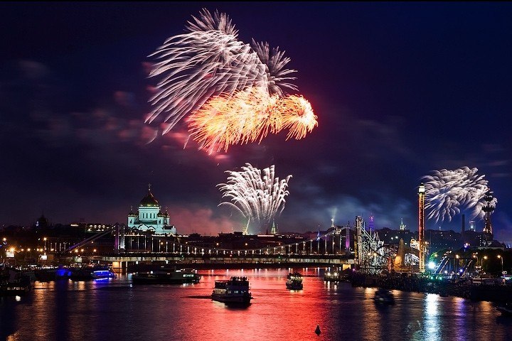 Роскошный праздничный вечер на реке и самое любимое и самое ожидаемое с детства зрелище салюта над красавицей Москвой, с самых выгодных ракурсов! Вечерняя праздничная теплоходная прогулка на День Города по историческому центру Москвы, с великолепным ужином от капитана и живой музыкой на борту - самые «открыточные», самые выигрышные панорамы любимого города в миллионах огней праздничной иллюминации и самая роскошная фотосессия! Вы сможете полюбоваться самыми красивыми мостами, площадями и набережными красавицы-Москвы и насладиться живой феерией Салюта на День Города! С борта теплохода вы увидите сотни залпов над столицей, практически со всех "точек" запуска. Яркие всплески отражаются в водной глади, вокруг - роскошная вечерняя подсветка. Водная романтическая прогулка под живую музыку с просмотром салюта - прекрасная возможность провести праздничный вечер ярко и незабываемо и для коренных москвичей, и для гостей нашей красавицы-Москвы. Наш праздник будет не только ярким, но и вкусным, ведь вас ждет праздничный ужин. Отличный праздничный аккорд чудесного Дня Города! Столичные власти обещают нам в этом году особенный, невероятный и высокохудожественный фейерверк: над домами и проспектами взлетят бабочки, улыбнутся смайлики и расцветут хризантемы! Высота залпов предполагается до 80 метров, а общее количество залпов до 6000!