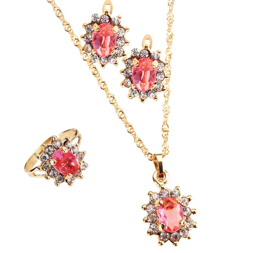 Это украшение великолепно и достойно вас! Комплект из сережек, кольца и подвески придаст вашему образу утонченность и неотразимость. Блеск нежного розового камня в оправе из белых кристаллов покорит окружающих – ваша нежность и загадочность сделает вас еще более прекрасной и элегантной!