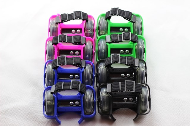 Роликовые колеса одеваются прямо на обувь и позволяют перемещаться по городу быстро и с комфортом! Колеса раздвигаются под размер обуви, а также светятся во время езды.