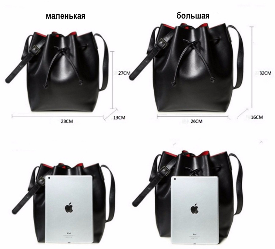 Цвет: чёрный (большая сумка), чёрный (маленька сумка), красный (маленька сумка)
