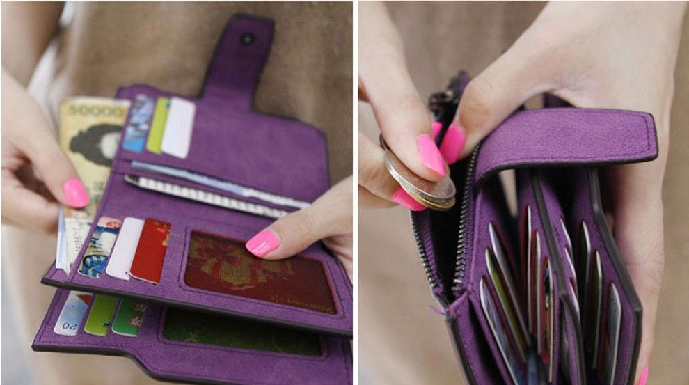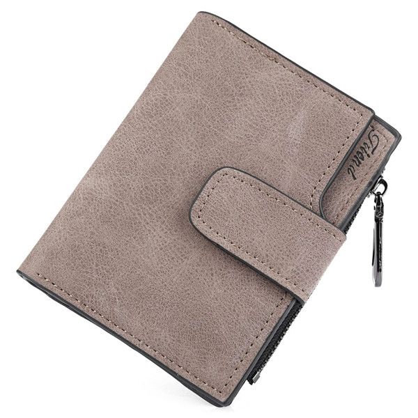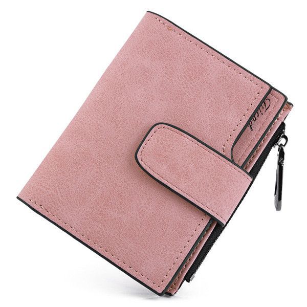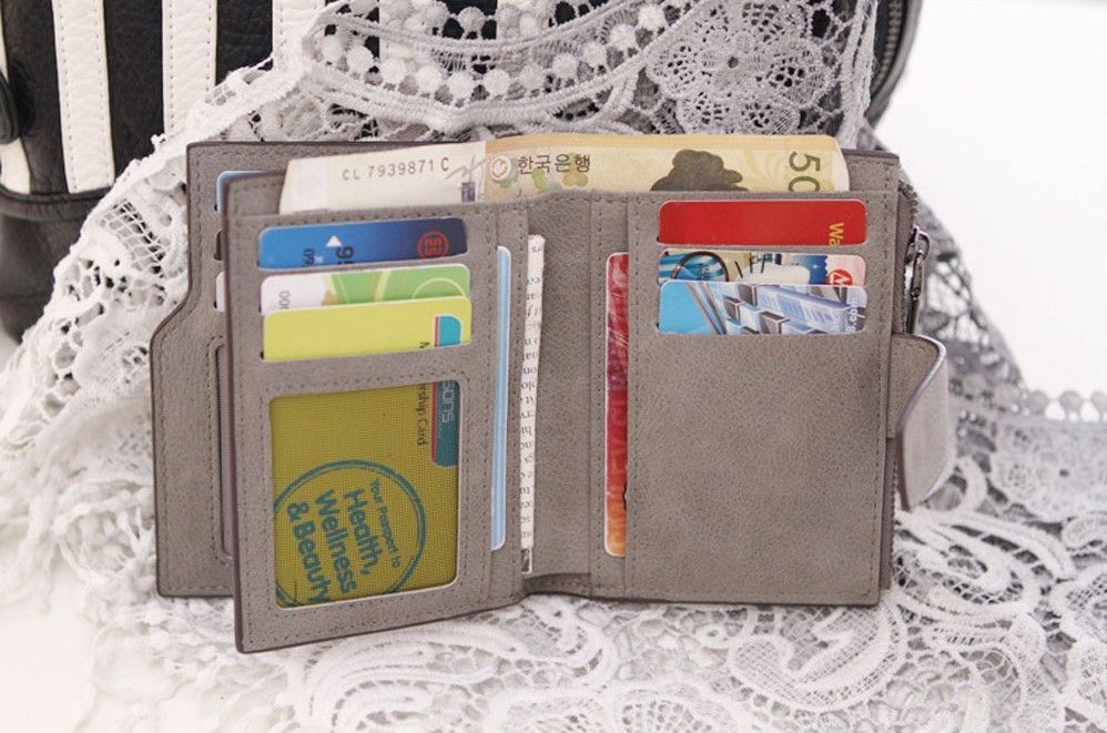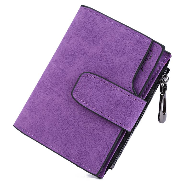 Компактный кошелек из матовой искусственной кожи, закрывается на кнопку. Имеет отделения для карточек и денег, карман для мелочи на молнии. Размеры: 12,4 см*10 см. Производство - Китай.