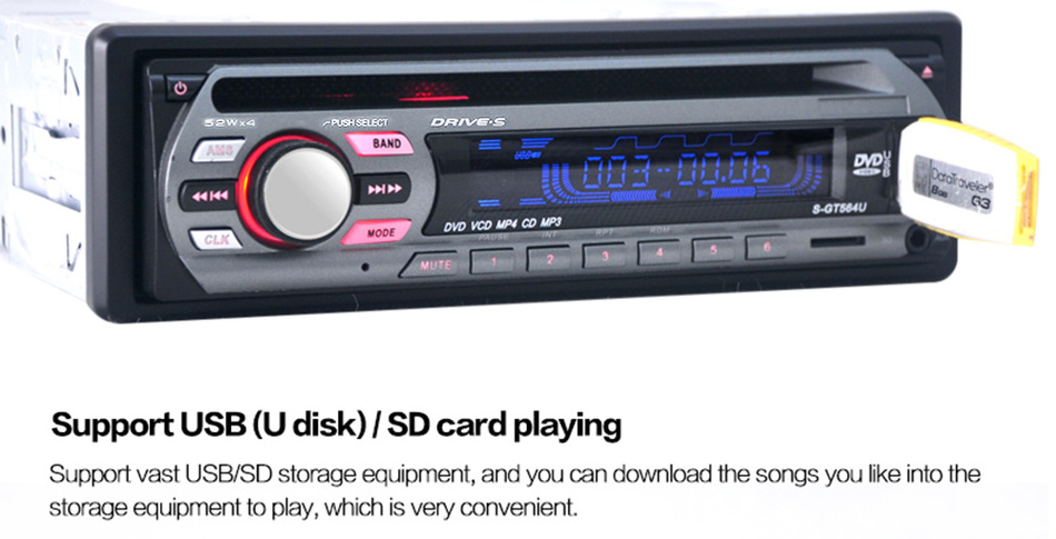 Комплект поставки: 1 х 564U 12 В автомобильные cd Mp3-плеер, 1 х пульт дистанционного управления, 1 х провод, 1 x набор инструментов, 1 х руководство пользователя