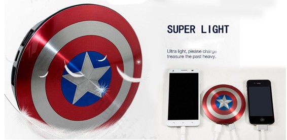 Новинка для любителей комиксов и компьютерных игр: в серии внешних аккумуляторов в стиле The Avengers (Мстители) пополнение - портативный аккумулятор в виде щита всемирно известного героя теперь на 6800mah.