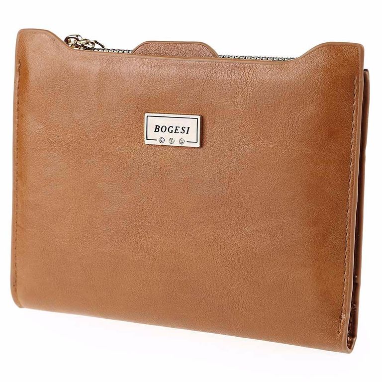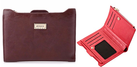 Женский кошелек двойного сложения из искусственной кожи, закрывается на кнопку. Имеет отделения для карточек, фото и денег, карман для мелочи на молнии. Размеры: 14 см*12 см. Производство - Китай.