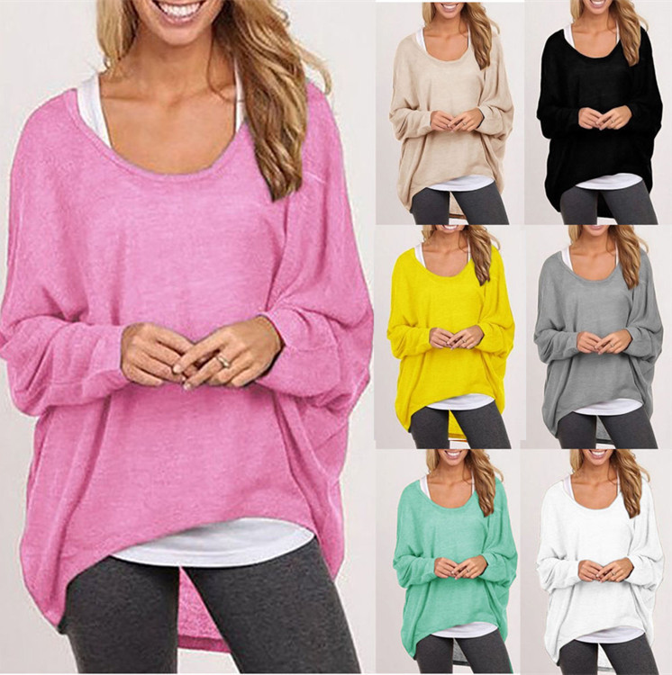 Женский пуловер, с длинными рукавами (рукава в форме крыльев летучей мыши), круглый вырез, удлиненная спинка, в ассортименте разные цвета.