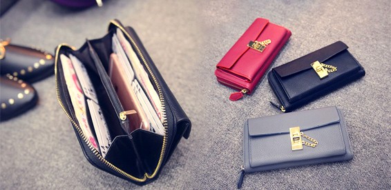 Женский вместительный кошелек из искусственной кожи, с накладным карманом, закрывается на "вертушок" с цепочкой. Имеет отделения для карточек и денег, карман для мелочи на молнии. Размеры: 19 см*9,5 см. Производство - Китай.