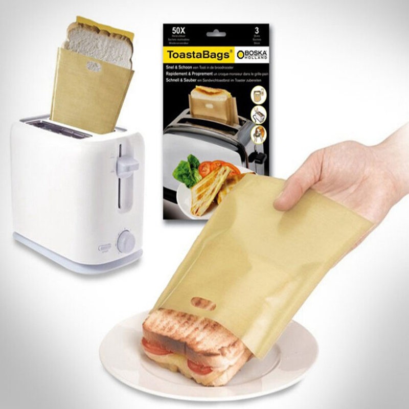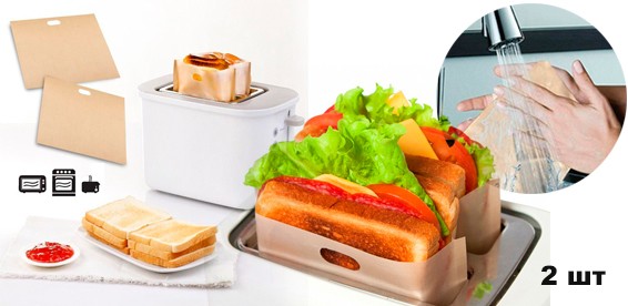 Пакеты для приготовления тостов не даст вашему сэндвичу подгореть и оставить крошки внутри тостера. Пакетики являются антипригарными, многоразового пользования (после эксплуатации их достаточно промыть проточной водой).