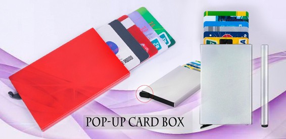 При нажатие кнопки всё карты выскользнут из чехла. Максимально вмещает 6 карт.