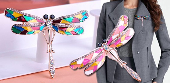 Очаровательная яркая брошь, выполненная в виде стрекозы.