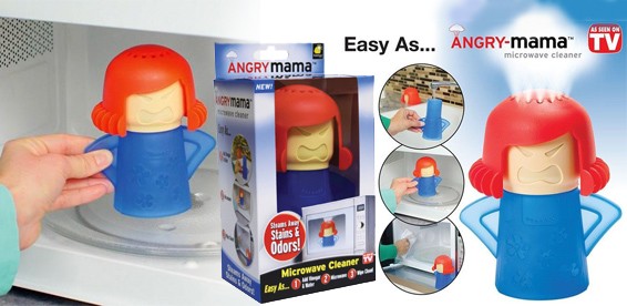 При этом само приспособление прекрасно переносит мытье в посудомоечной машине и, что немаловажно, станет своеобразным украшением вашей кухни. Ее дизайн решен весьма оригинально – паровой очиститель микроволновки «Angry Mama» выглядит как забавная маленькая статуэтка, изображающая разозленную домохозяйку.