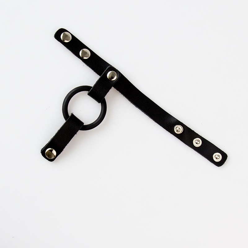 Сбруя выполнена из кожи и дополнена 5-тью эрекционными кольцами разных размеров, позволяющих расшить варианты использования фетиш изделия.