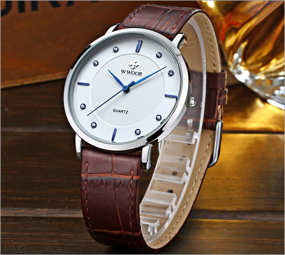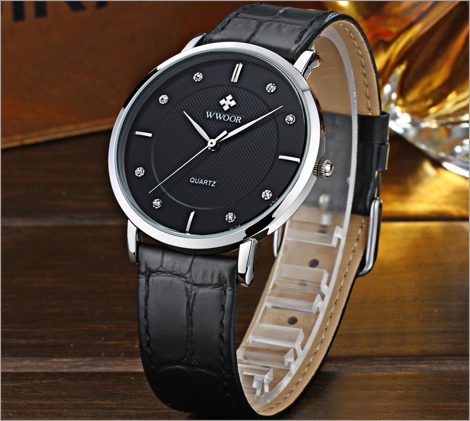 Эти стильные водонепроницаемые ультратонкие мужские часы-хронограф на кожаном ремешке превосходно сидят на мужской руке, подчеркивая силу и уверенность своего владельца.
