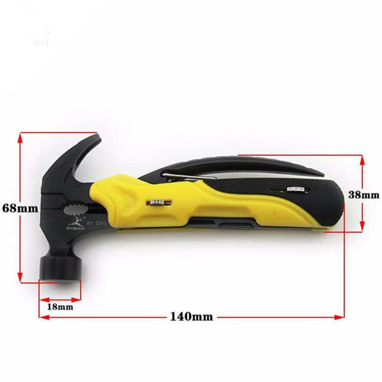 Функции: молоток, плоскогубцы, ногтей съемник, пила, нож, отвертка, нож для стейка.