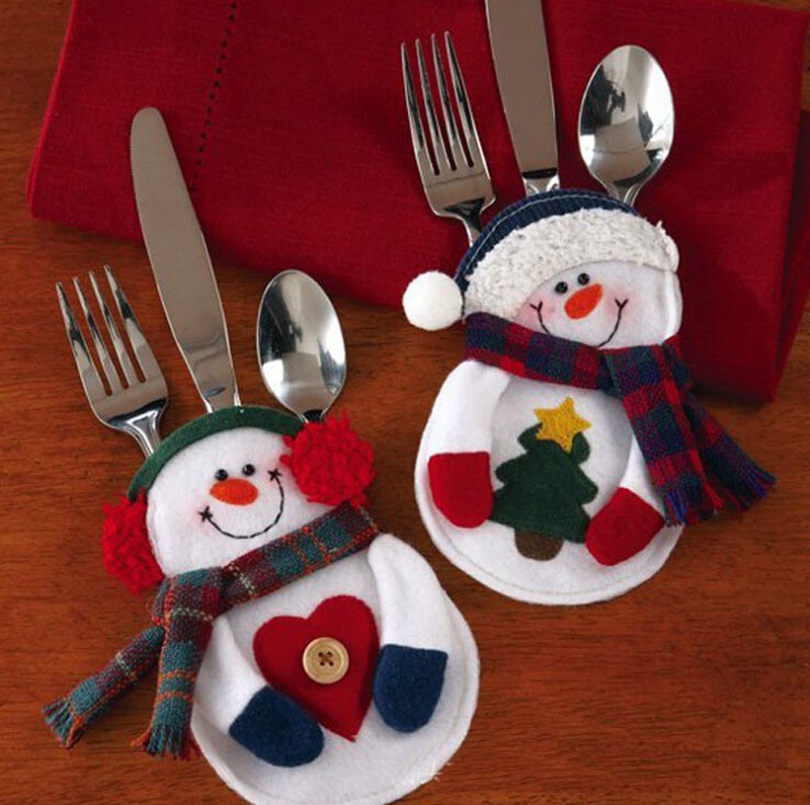 Снеговики для столовых приборов. Необычное и очаровательное решение для сервировки стола.