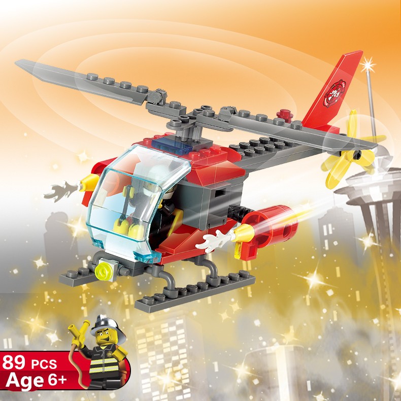 - Конструктор содержит 89 деталей, разных по форме и цвету для сборки модели «Пожарный вертолет».