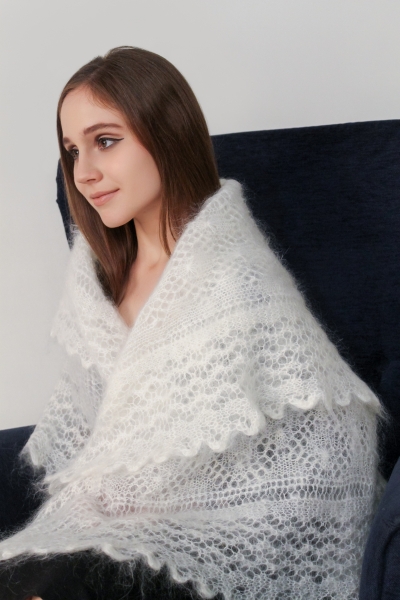 Шаль Зимнее Кружево- настоящая классика Оренбургского Пуховязания, выполнена в лучших традициях промысла! Квадратная плотная шаль с узором и ажурной каймой, связана из мягкого натурального белого пуха высокого качества.
